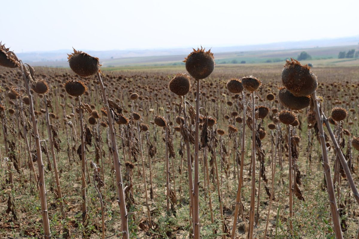 Ayçiçeklerinin aşırı sıcak ve poyraz nedeniyle tam olgunlaşmadan kuruduğunu belirten üreticiler, bir çok üründe olduğu gibi ayçiçeğinde de bekleneni alamadıklarını kaydetti.
