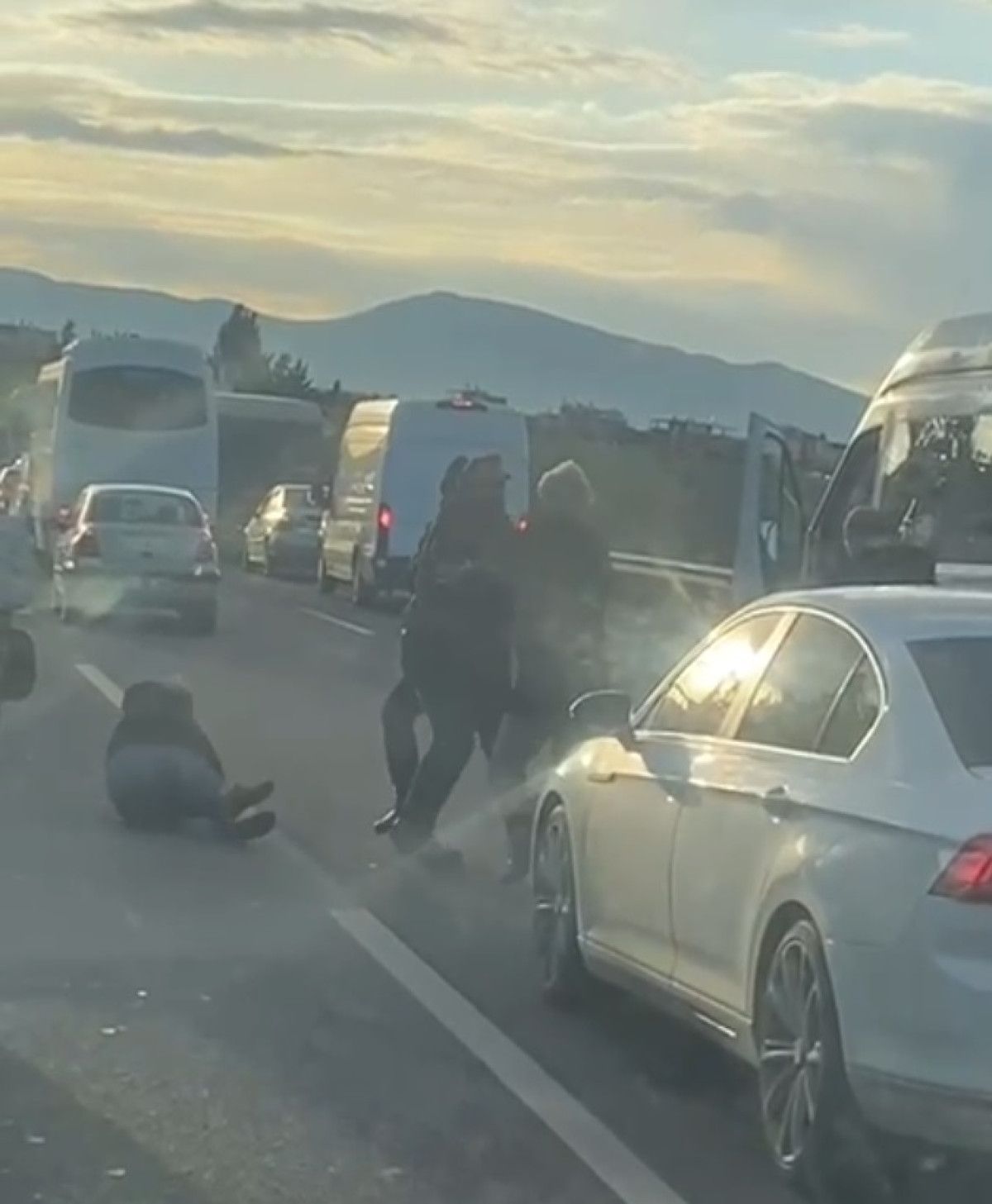 Başka sürücüler de kavgaya dahil olunca trafik bir süre durdu.