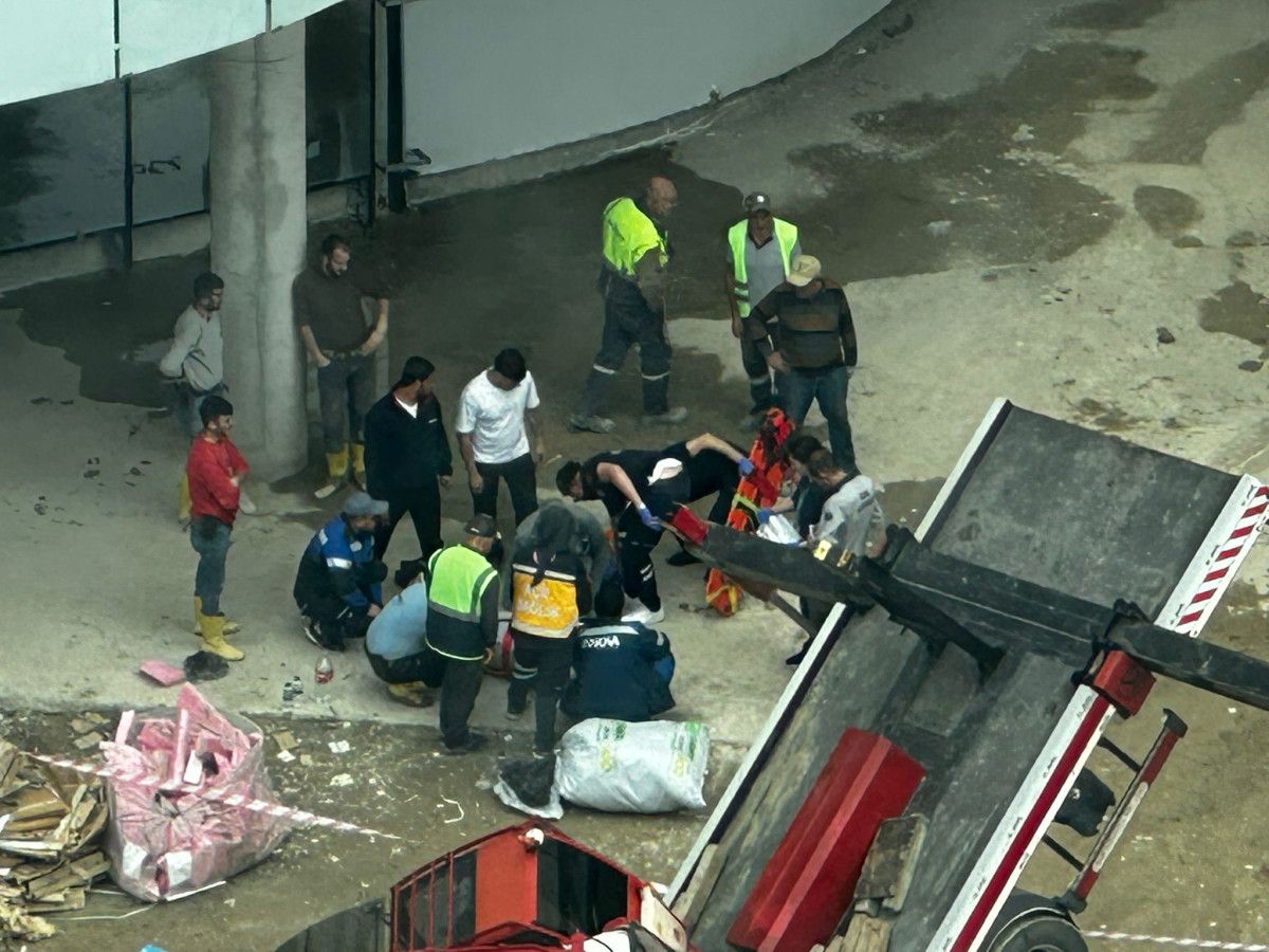 Kaza sonrası sepet içerisindeki 2 işçi ile sökülen parçaların isabet ettiği 1 işçi yaralandı.