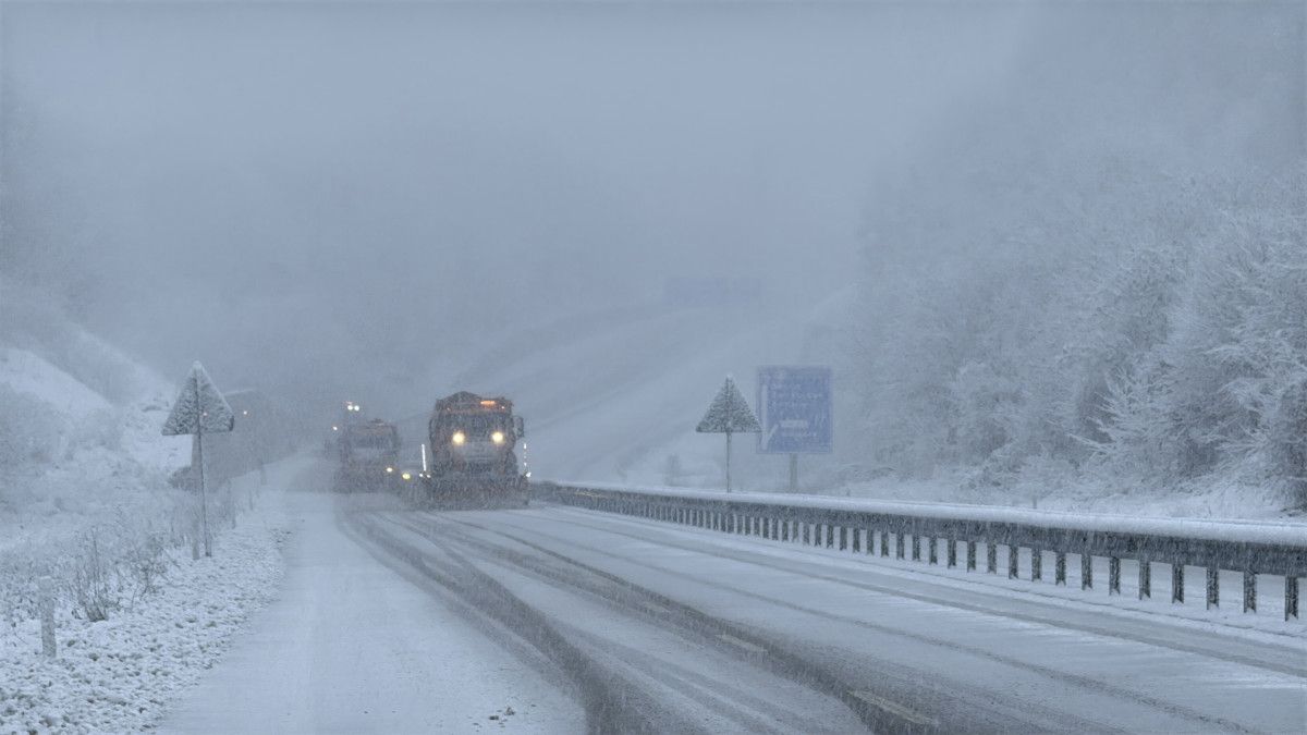 Karayolları ekipleri, yollarda kar küreme çalışması yaptı.