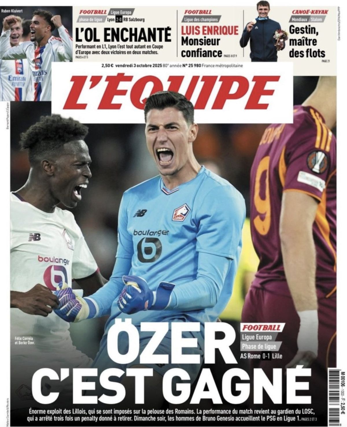 Fransa’nın önde gelen spor gazetelerinden L’Equipe, Berke Özer için ‘zapt edilemez’ ve ‘Gecenin kahramanı’ başlıklarıyla milli kalecinin performansını manşetlere taşıdı.