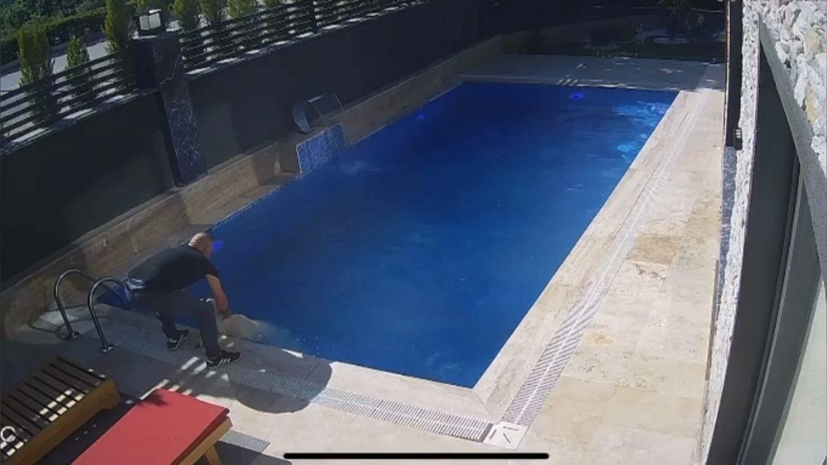 Koçun ardından villanın bahçesine giren Sedat Kasap, havuz kenarına gelen hayvanı eliyle dışarı çıkararak yakaladı.