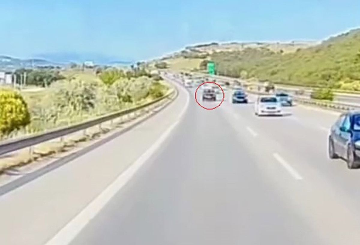 Daha sonra emniyet şeridini de ihlal eden sürücü, önündeki çekici kamyonu da sağladı.