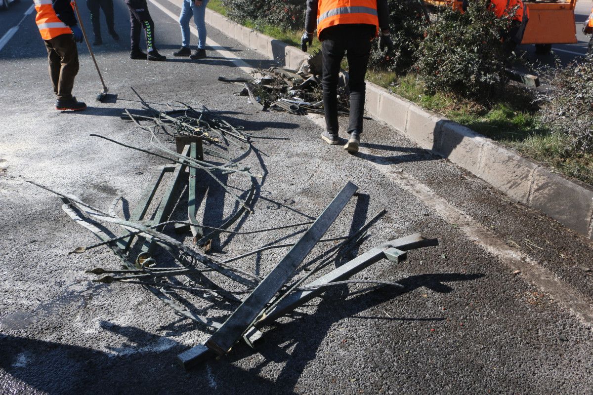Yaralılar hastaneye kaldırılırken karayolları ekipleri demir korkulukları temizledi ve onarma işlemleri yaptı.