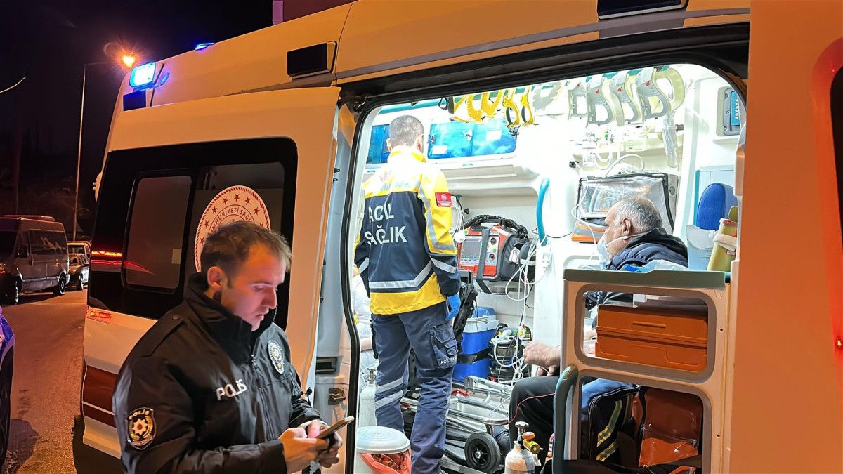 Dumandan etkilenen E.Ö. ile üvey babası N.B.’ye ambulansta müdahale edildi.