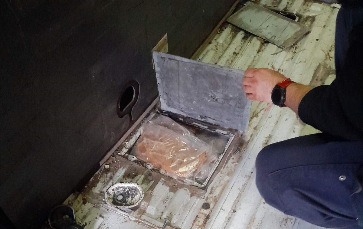 Gümrük memurları daha sonra yaptıkları fiziki incelemede, altında özel olarak yapılmış gizli bölmelerin bulunduğu beş adet metal kapak tespit etti.