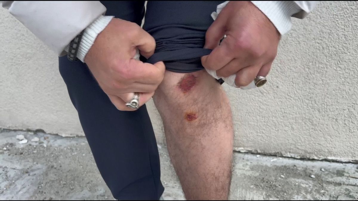 Arkadaşımla ve eşimle sohbet ediyorduk. O sırada birden köpekler üzerimize atıldılar. İlk önce arkadaşımın eşine saldırdılar, onu ısırmaya çalıştılar. Biz müdahale edince bize de saldırdılar. Ben kaçmaya başladım, ama hepsi peşime takıldı. O sırada düştüm ve bu hale geldim. Sadece ben değil, bu köpekler herkese saldırıyor. Burada, Hakkari’deki gibi birinin mi ölmesi lazım, bu köpekler için önlem almak adına? O kadın köpekleri besliyordu, çiğ et veriyordu onlara. Ben de ona ‘Bak, biz bu hale geldik, sizin yüzünüzden’ dedim. O da ‘Keşke köpekler ölseydi, ama sen öl’ dedi. İnsan hayatı bu kadar ucuz mu? Birkaç dakika önce, marketten alışveriş yapıp evine gitmeye çalışan başka bir adam da köpeklerin hedefi oldu. Neyse ki orada çalışan manav, kasayla köpeklerin üzerine giderek adamı kurtardı.