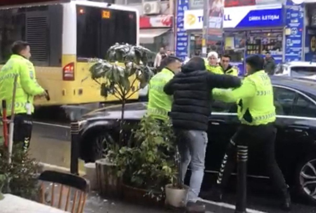 İstanbul’un Ortaköy ilçesinde bir otomobil sürücüsü, trafik güvenliğini tehlikeye atacak şekilde ilerlemeye başladı.
