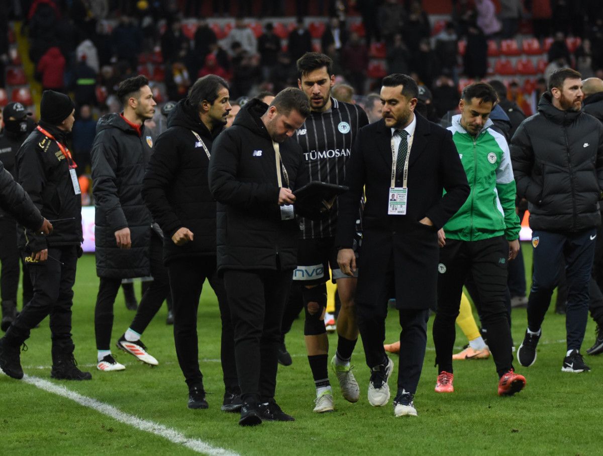 Müsabaka sonrası Konyasporlu yöneticiler sahaya girerek maçı yöneten Çağdaş Altay’a tepkide bulundu.