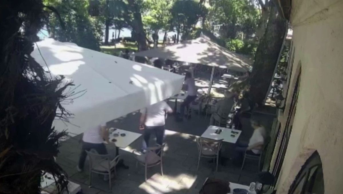 Güvenlik kamerasına yansıyan görüntülerde, devasa dalın düşüş anı ve çevredekilerin panikle yardıma koştuğu anlar saniye saniye kaydedildi.