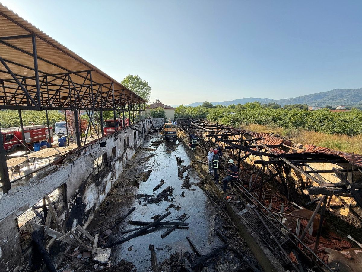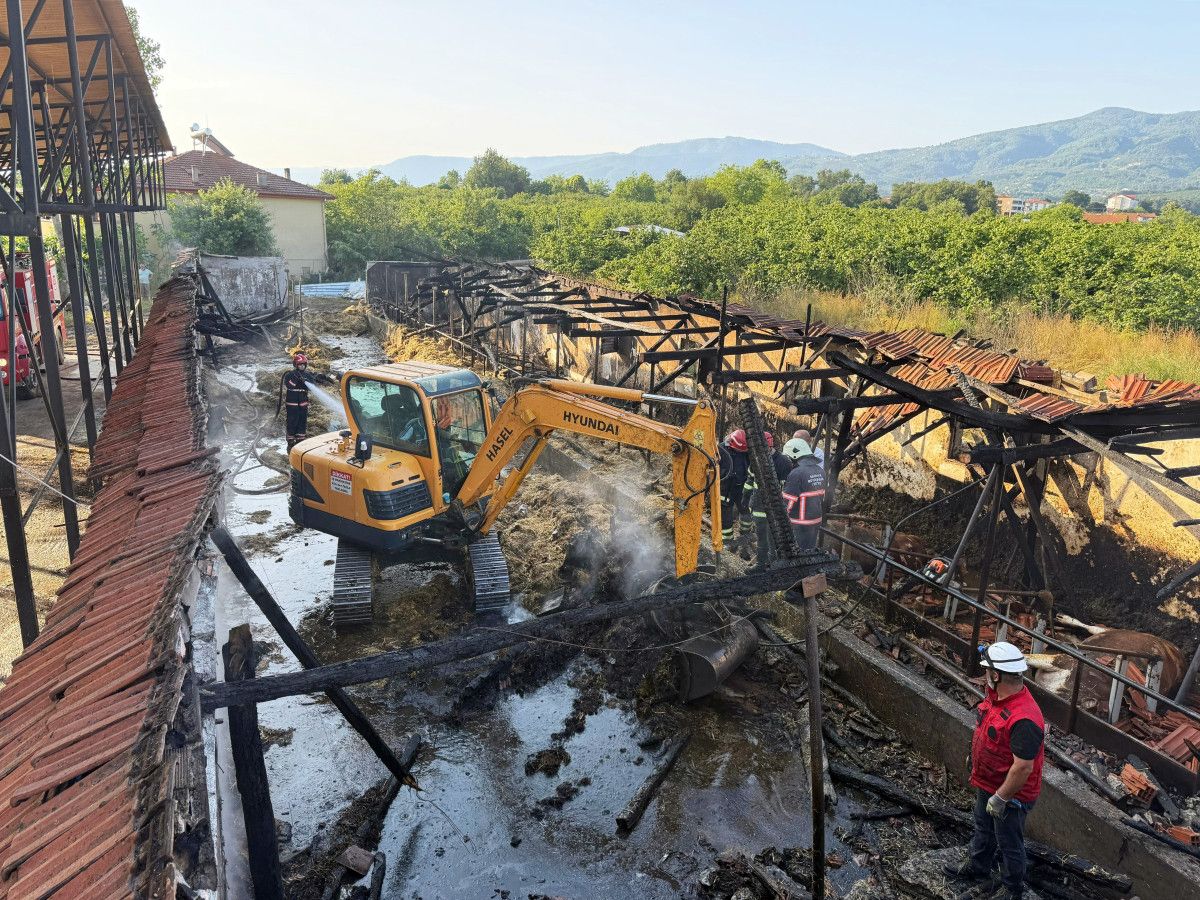 Yangın kontrol altına alındı ancak geriye yalnızca küle dönmüş bir ahır ve telef olmuş hayvanlar kaldı.