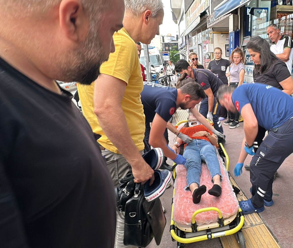 Çarpmanın etkisiyle motokurye, motosikletiyle birlikte yere düşerek, yaya ise çarpmanın etkisiyle yaralandı.