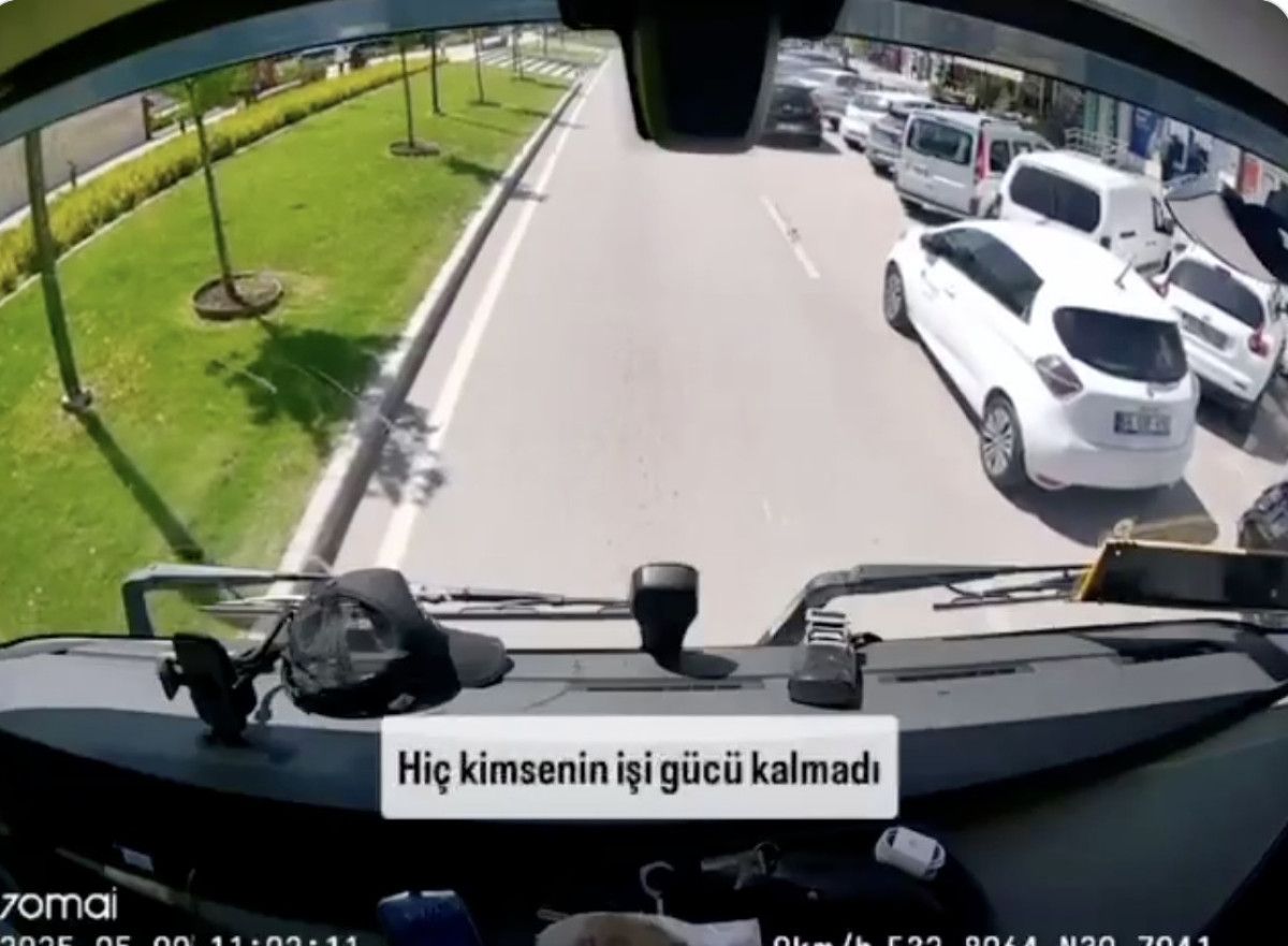 Trafik polisinin müdahale etmesi ve ceza kesmesi sonrası ise tır sürücüsü, “Helal etmiyorum” dedi.