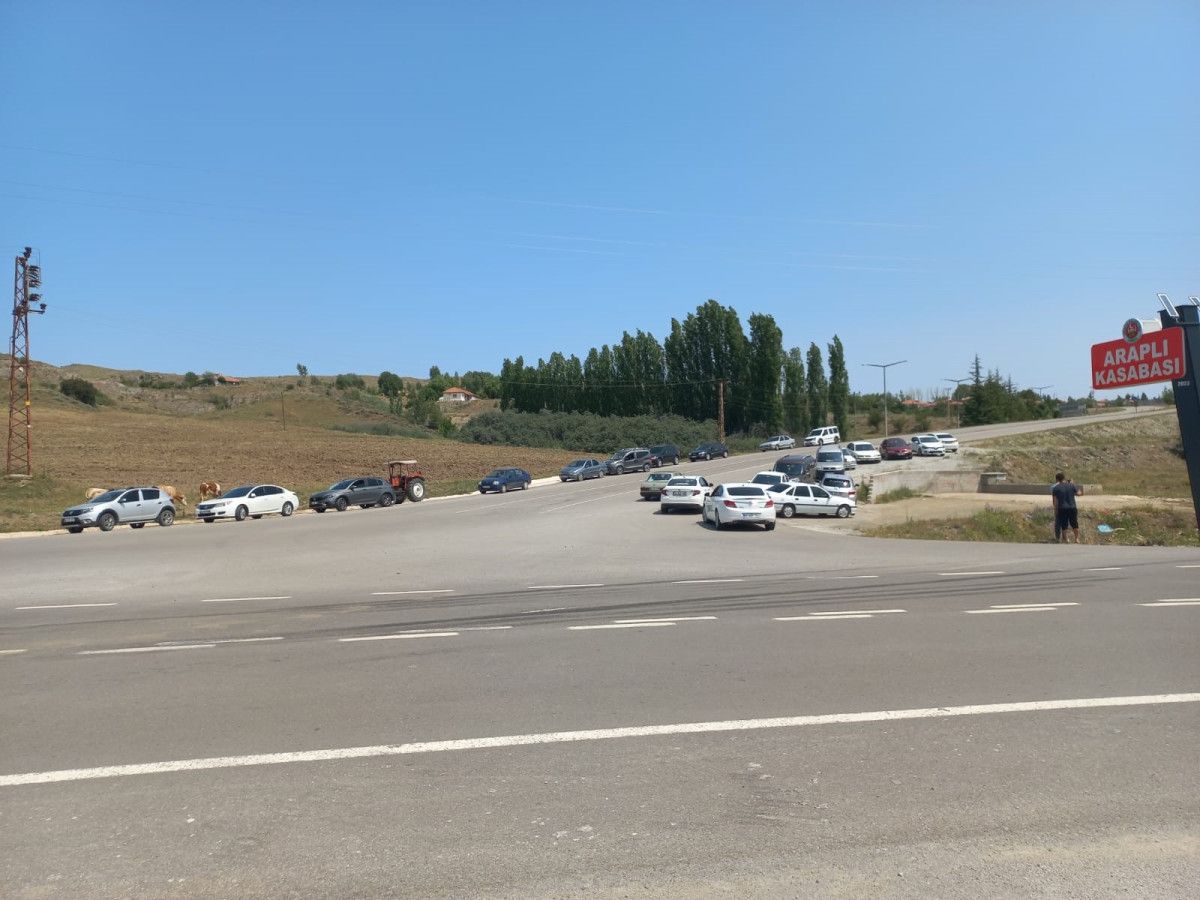 Araplı kasabası girişinde toplanan vatandaşlar, yaşadıkları mağduriyeti dile getirdi.